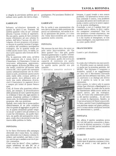 Quindi, non credo che si possa parlare obiettivamente di un polo socialista che è in grado di aggregare un polo laico, in questa situazione quindi vengono un po' a cadere tutti gli schemi a cui si può far riferimento, sia quello bipolare, sia quello del pentapartito strategico, credo che si sia entrati in una fase nuova della politica in Italia.