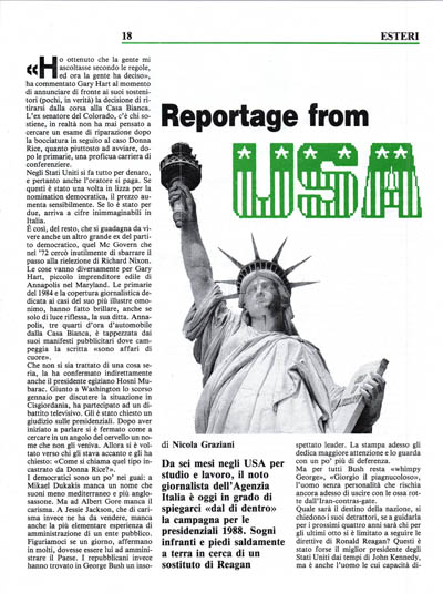 I democratici sono un po' nei guai: a Mikael Dukakis manca un nome che suoni meno mediterraneo e più anglosassone. Ma ad Albert Gore manca il carisma. A Jessie Jackson, che di carisma invece ne ha da vendere, manca anche la più elementare esperienza di· amministrazione di un ente pubblico. Figuriamoci se un giorno, affermano in molti, dovesse essere lui ad amministrare il Paese. I repubblicani invece hanno trovato in George Bush un insospettato leader. La stampa adesso gli dedica maggiore attenzione e lo guarda con un po' più di deferenza.