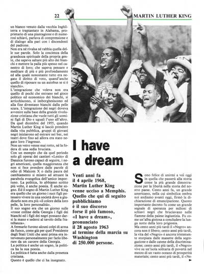 Il 1963 non è una fine ma un inizio. E quelli che Sperano che il «Negro» aveva bisogno di soffiar via il vapore e sarà ora contento, avranno un brusco risveglio. Non ci sarà né riposo né tranquillità in America fino a quando il «Negro» non otterrà i suoi diritti di cittadino. Le trombe d'aria della rivolta continueranno a smuovere le fondamenta del nostro paese fino a quando non verrà il giorno luminoso della giustizia.