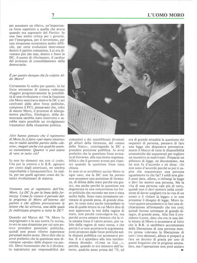 Quando nel Marzo del '78, Moro fu imprigionato e la sua scorta fu uccisa, io ero in una situazione per cui non potevo prendere posizioni politiche, quindi non posso riferire esperienze personali molto acute. Devo dire che io avrei preferito che la questione non diventasse «preda» delle dispute tra partiti. Devo riconoscere che lo è diventata soprattutto per responsabilità dei comunisti e dei repubblicani diventati gli alfieri della fermezza, del «senso dello Stato», costringendo la DC a prendere posizione pubblica. Io avrei preferito che la questione fosse avocata al Governo, alla sua intera responsabilità e che il governo avesse poi risposto quando la questione fosse stata chiusa.