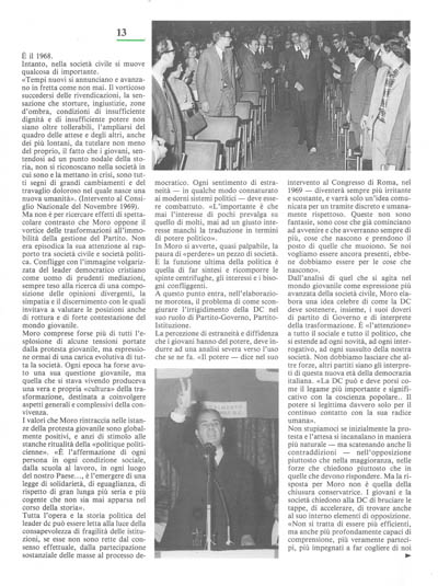 Non stupiamoci se inizialmente la protesta e l'attesa si incanalano in maniera più naturale – ma scatenando anche lì contraddizioni – nell'opposizione piuttosto che nella maggioranza, nelle forze che chiedono piuttosto che in quelle che devono rispondere. Ma la risposta per Moro non è quella della chiusura conservatrice. I giovani e la società chiedono alla DC di bruciare le tappe, di accelerare, di trovare anche al suo interno elementi di opposizione.
