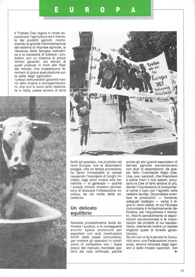 Sarebbe probabilmente facile eliminare i surplus, e le conseguenti enormi spese sostenute per esportarli con aiuti (restituzioni) forniti dalle casse comunitarie, per mettere gli operatori in condizione di competere con i bassi prezzi del mercato mondiale (per altro del tutto artificiale, poiché anche gli altri grandi esportatori di derrate agricole sowenzionano con aiuti le esportazioni; da questo fatto l'inevitabile litigio CeeUsa, ove i secondi, che finanziano a piene mani il loro export, accusano la Cee di farlo ancora di più, dando l'impressione di comportarsi come il lupo con l'agnello nella celebre favola). Occorrebbe orientare le produzioni – fornendo adeguati sostegni – verso il legno e i semi oleosi, di cui l'Europa comunitaria è fortissimamente deficitaria, pèr riequilibrare il mercato, ridurre sensibilmente le esportazioni sowenzionate e le importazioni dei prodotti di cui necessitiamo, ottenendo inoltre un habitat migliore quale le foreste garantiscono.