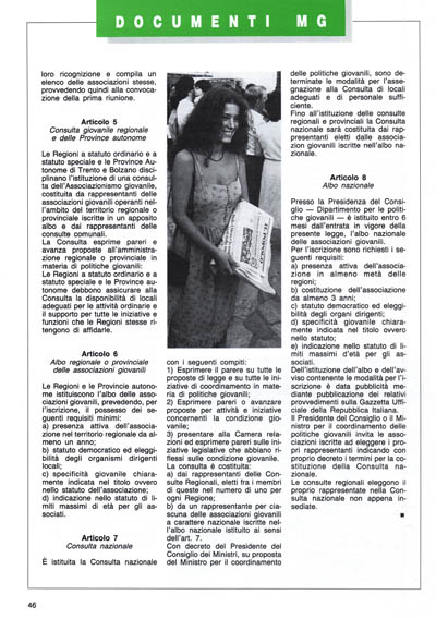 L'esigenza di garantire l'aderenza alle realtà dell'intervento delle istituzioni nella questione giovanile, e, al tempo stesso, di rispondere alla pressante richiesta del mondo giovanile di far sentire la propria voce e il proprio peso nelle scelte politiche che si riflettono maggiormente nella società, impongono l'istituzione di organismi di partecipazione, consultazione e proposizione giovanile a livello comunale, regionale e centrale.