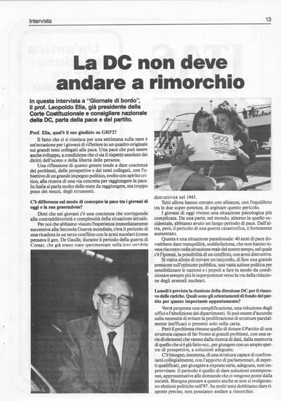 Questa è una situazione paradossale: 40 anni di pace dovrebbero dare tranquillità, soddisfazione, che non hanno invece riscontro nella situazione reale del nostro tempo, nel quale c'è l'ipotesi, la possibilità di un conflitto, con armi distruttive. Si tratta allora di trovare un raccordo, di fare una grande pressione sull'opinione pubblica, una vasta azione politica per sensibilizzare le nazioni e i popoli a fare in modo da condizionare sempre più le superpotenze verso la via della riduzione degli arsenali nucleari.