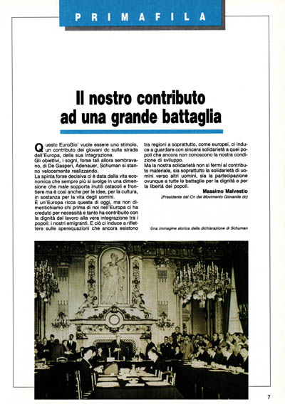 Questo EuroGIO' vuole essere uno stimolo, un contributo dei giovani dc sulla strada dell'Europa, della sua integrazione.