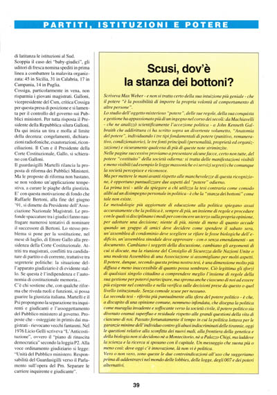 La prima tesi – utile da spiegare a chi utilizza la tesi contraria come comodo alibi ad un disimpegno personale in politica – è che la "stanza dei bottoni" come tale non esiste.