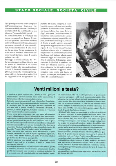 La condizione prima è comunque una nuova consapevolezza da parte di tutte le forze politiche che devono rendersi conto che la questione fiscale, in quanto problema essenziale di una comunità, non può essere strumento di lotta politica. La questione fiscale potrà essere risolta solo se diventerà tema di unificazione morale del paese e non di scontro politico e sociale.