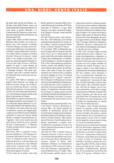 Luglio 1984: rientra in Italia Tollllllaso Buscetta. Non è pentito, ma vuole vendicarsi con i clan vincenti; lo affianca Vincenzo Sinagra, che dopo essersi finto pazzo per molti mesi, racconta le atrocità della "camera della morte" di S.Erasmo, delle vittime scomparse nei bidoni di acido. Finiscono in carcere i cugini Salvo e l'ex sindaco Ciancimino, vengono raccontati gli appalti miliardari alla Lesca del conte Cassina e all'Icem, appalti sui quali si erano infranti gli sforzi di altri due sindaci dc, Elda Pucci e Giuseppe Insalaco. Ma anche quest'ultimo cade sotto il piombo mafioso all'indomani della conclusione del maxi-processo.
