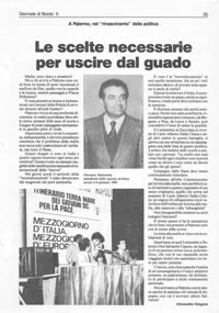 Palermo, la città dalle mille contraddizioni, oggi ritorna alla ribalta ·non più per i suoi delitti di mafia o per il maxi processo, ma per un fermento del tutto nuovo: «la consapevolezza di essere protagonisti in una città che cambia».