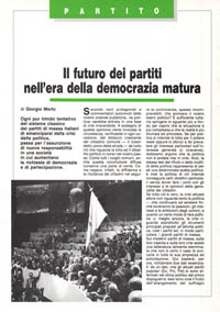 Ogni pur timido tentativo del sistema classico dei partiti di massa italiani di emanciparsi dalla crisi della politica, passa per l'assunzione di nuove responsabilità in una società in cui aumentano le richieste di democrazia e di partecipazione.
